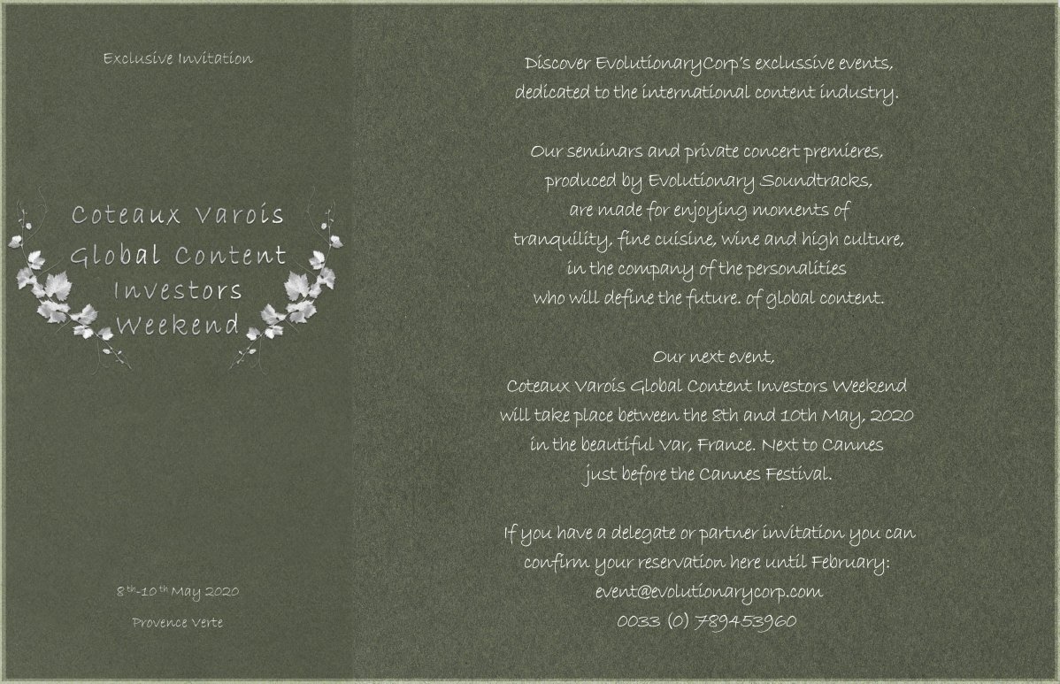 Through Evolutionary Soundtracks, we have at disposal some of the finest talent: renown soloist an composers, leading regional and national orchestras, world class sound engineers. Evolutionary Soundtracks does both open ticket and private concerts for showcasing film/TV productions before the industry and the audience.
